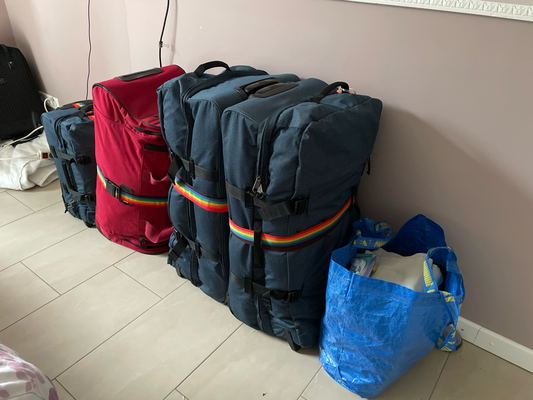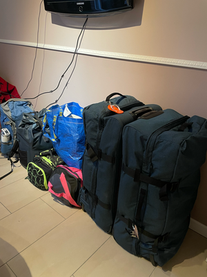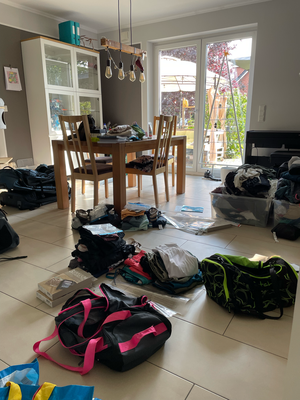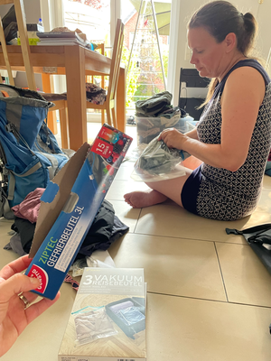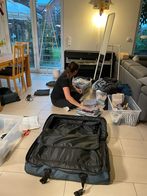 Am nächsten Abend sind wir dann fast fertig. Nach dem Studium der Gepäckbestimmungen auf der Website der Fluggesellschaft sind wir uns ziemlich sicher, was die Auswahl der Taschen angeht. Die Kofferwaage immer im Anschlag haben wir unser Gepäck am Ende auf drei Koffer und sechs Handgepäckstücke verteilt.