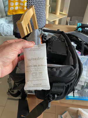 Zusätzlich benötigen wir noch Silica-Kissen für alle technischen Gerätschaften, die nicht feucht werden dürfen, wie Fotoapparat und Fernglas. Die hohe Luftfeuchtigkeit würde sonst ihre Spuren hinterlassen.